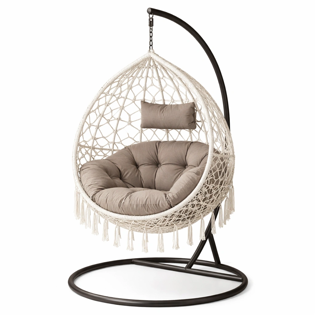 Material: Estructura de acero, asiento de cuerda de algodón, cojines de tejido de poliéster